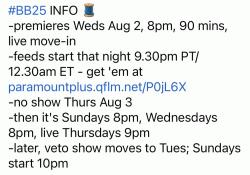 Big brother schedule