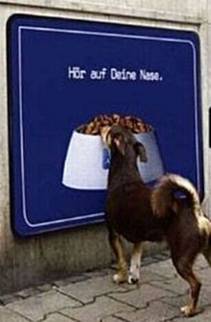 If the dog were a GERMAN SHEPHERD, he'd know to listen with his nose, not smell with it!
