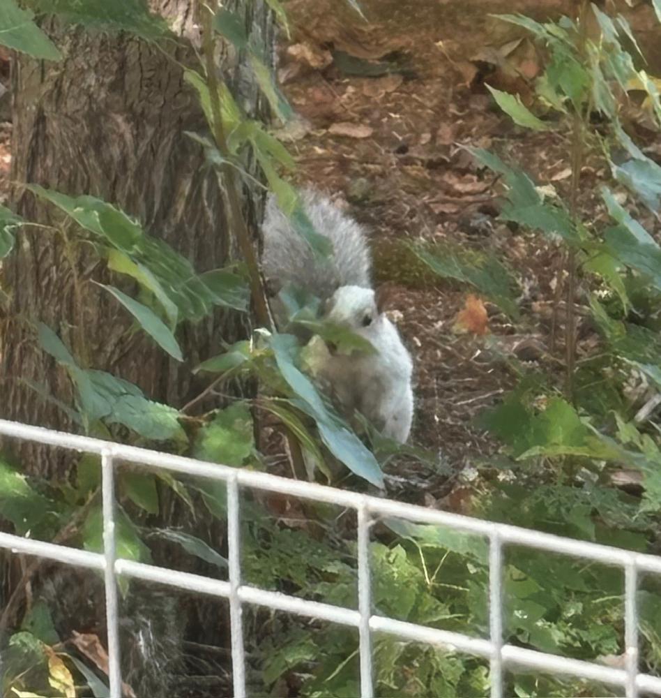 She's adorable! I've never seen a white squirrel. I have a squirrel friend that jumps onto my screen door every morning! I call him Petey! I give him nuts! Hes so cute!