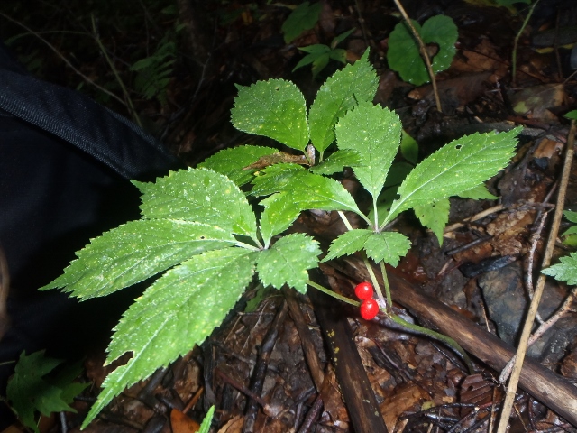 That's what it is-Ginseng. This year it sold for $870.00 a pound. A friend went up on the hill here and dug quite a bit-he brought me a couple of roots and some berries to replant