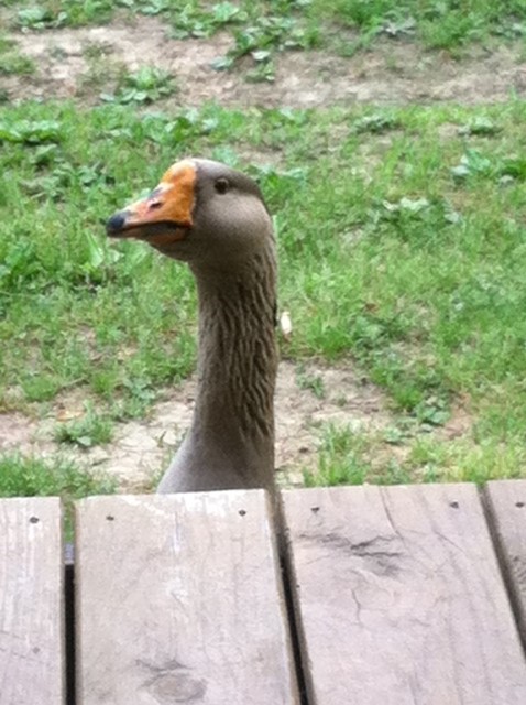This is a hilarious picture. I really like the expression of their face. Is that a grey lag goose?