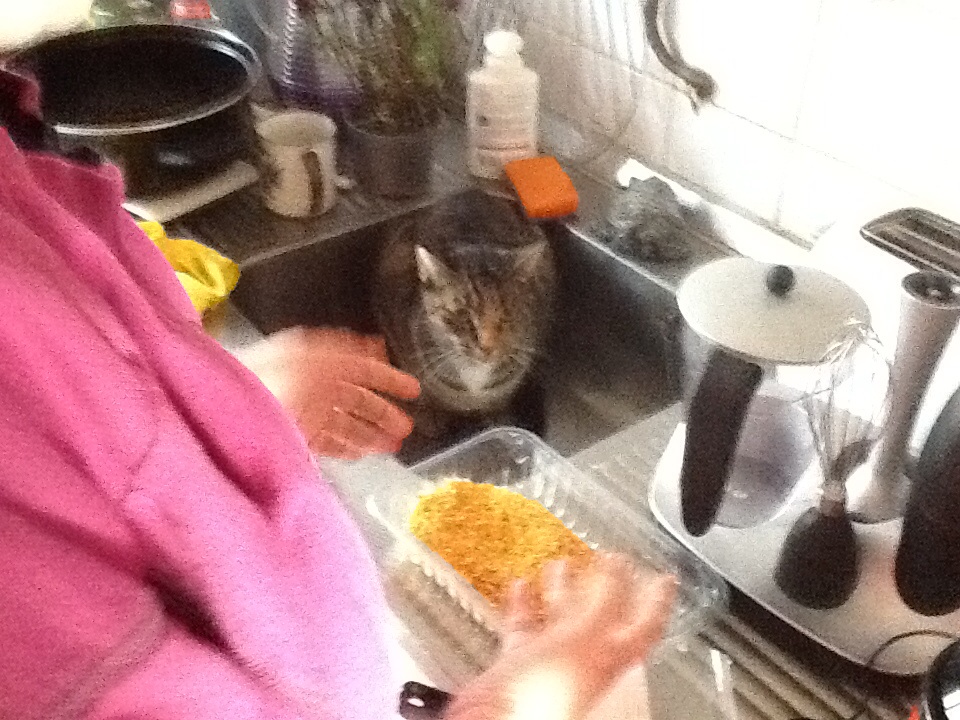 Lol. There is NO way I would have cat dander near my food. You must be used to it!