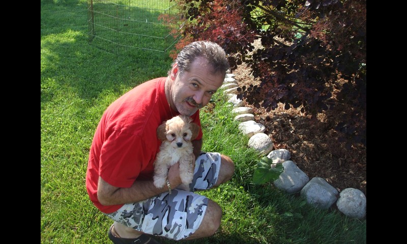 She is a King Charles Spaniel, Bichon mix...she was 8 weeks in this photo she is now 6 years and 5 months OMG where does the time go...she is beautiful, smart and very intelligent...hmmmm she gets that from her Mom for sure LOL...