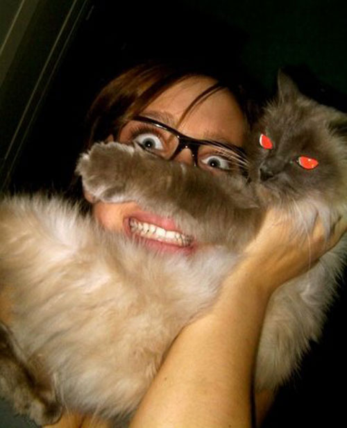 Align your hairy companion under your face if possible
