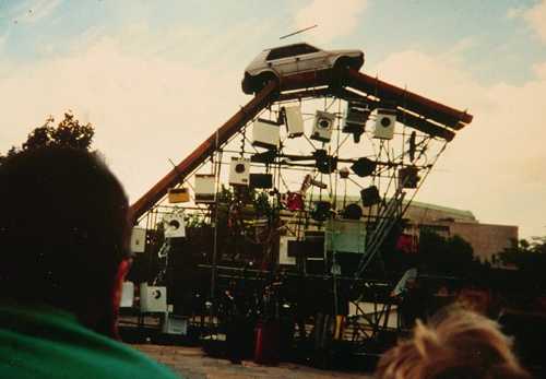 "And now Ladies and Gentlemen for your amazement. Fearless Frank will attempt to jump his car into an ordinary glass of drinking water!"