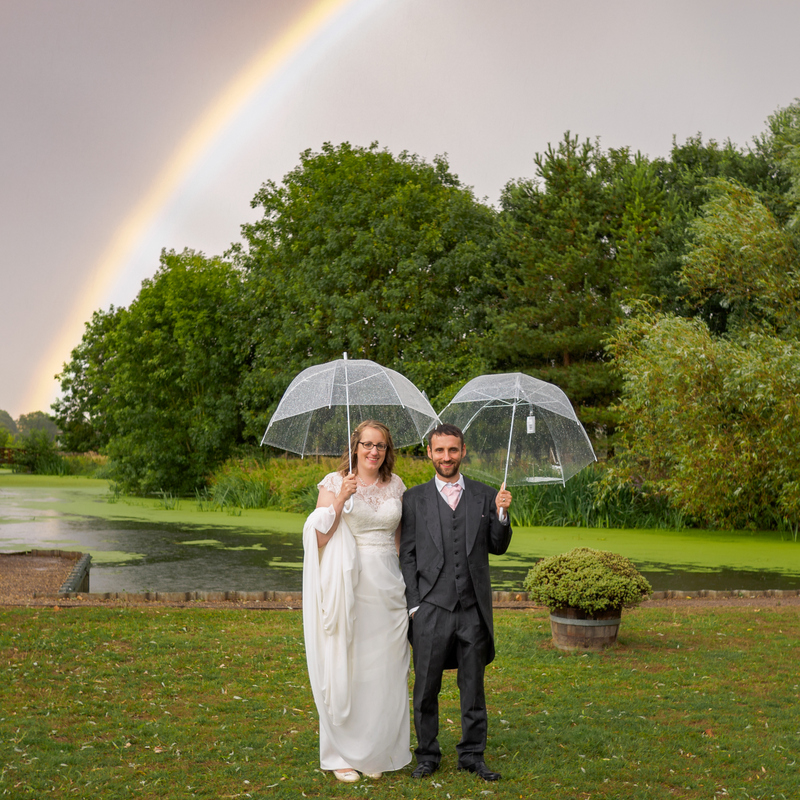 Typical man!! Hand in pocket instead of putting his arm around his beautiful bride! LOL Beautiful photograph and what a shot of that lovely rainbow!