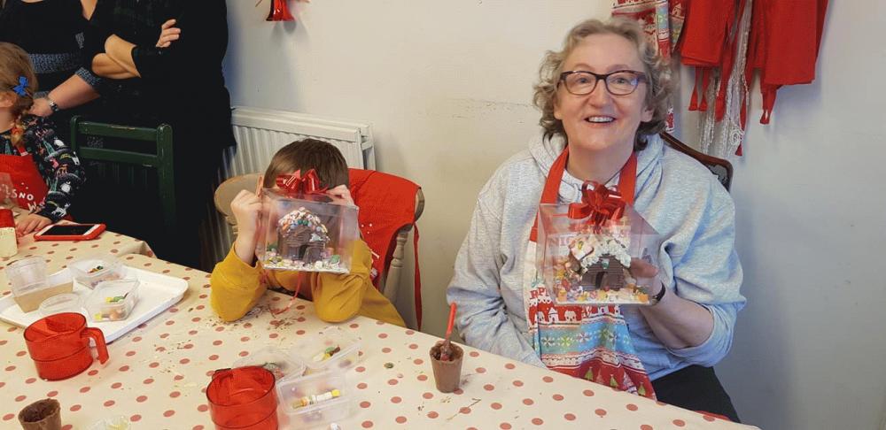 My Grandson and I with our Chocalate houses we made.