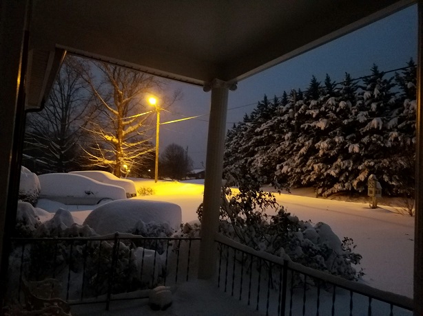 What is it about nighttime snow pictures??!! gasp! Do you still have much on the ground? We're in the 50s. Not very normal.