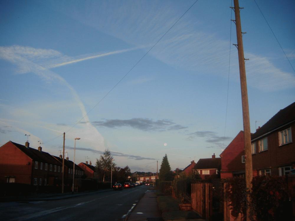 Wispy clouds over my street
