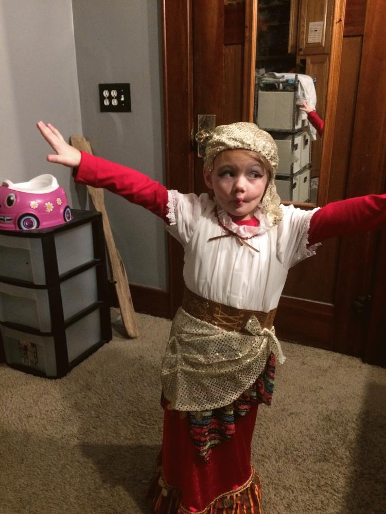 she is her own person lol ,yesterday she dressed herself for school no shirt but a vest said she was a wolf girl and cool