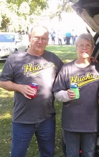 me and hubby at grandson Spencer football game 2018