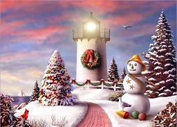 I Love this pic, a lighthouse reminds me of the Ocean then I get the snowman too, which I love & the scenery! Thanks for sharing!