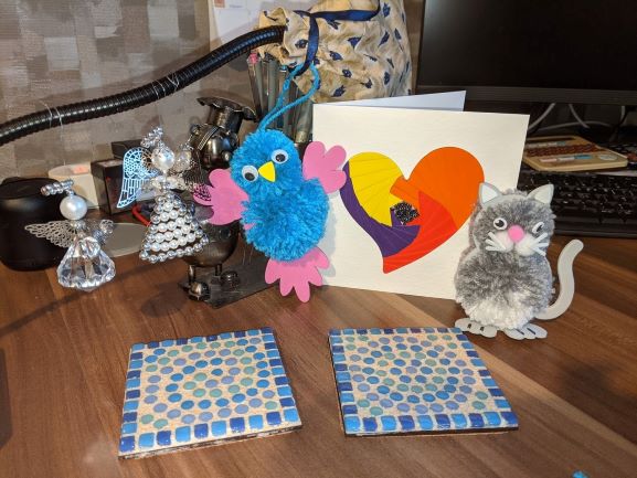 There were 8 family members, I made them all up a pack of thing to do and sent them each a pack. Then we went on Zoom and had our craft afternoon. We think we might try a cooking one next week.