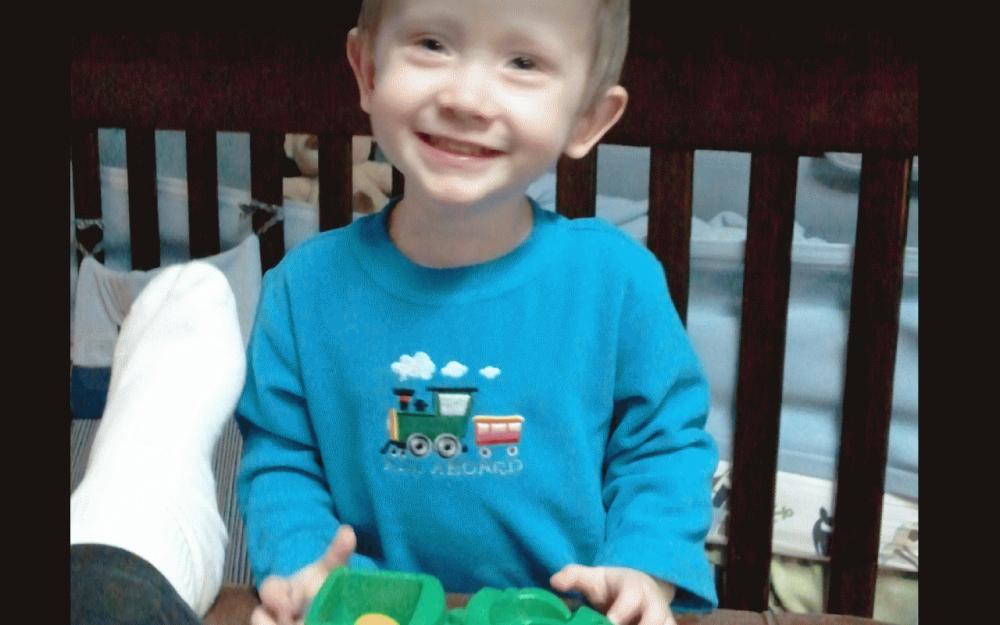 He looks very happy and sweet...and cute!